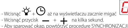 - Wcisnąć przycisk 🗕 na kilka sekund - Aby sparować okap, powtórzyć procedurę SYNCHRONIZACJI
