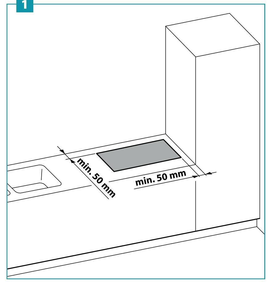 Urządzenie jest wyposażone w wentylatory chłodzące. Jeśli pod urządzeniem wpuszczonym w blat znajduje się szuflada, należy umieścić przegrodę oddzielającą pomiędzy szufladą a dolną częścią urządzenia, aby zapewnić konieczną wentylację płyty i nie dopuścić do zablokowania wentylatorów.
