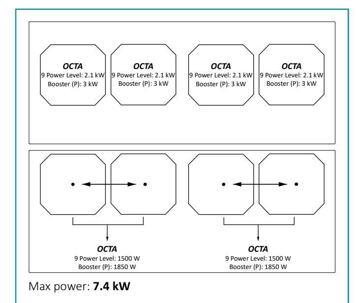 Włącza 3 strefy gotowania o różnych mocach gr- zewczych. |