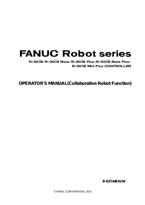 Thank you very much for purchasing FANUC Collaborative Robot.