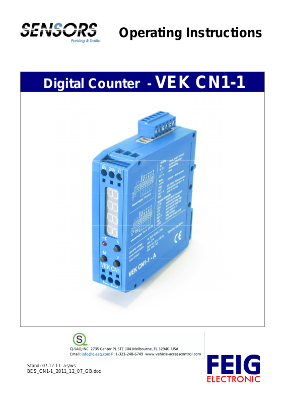 Start-up protocol - Digital Counter Unit VEK CN1-1