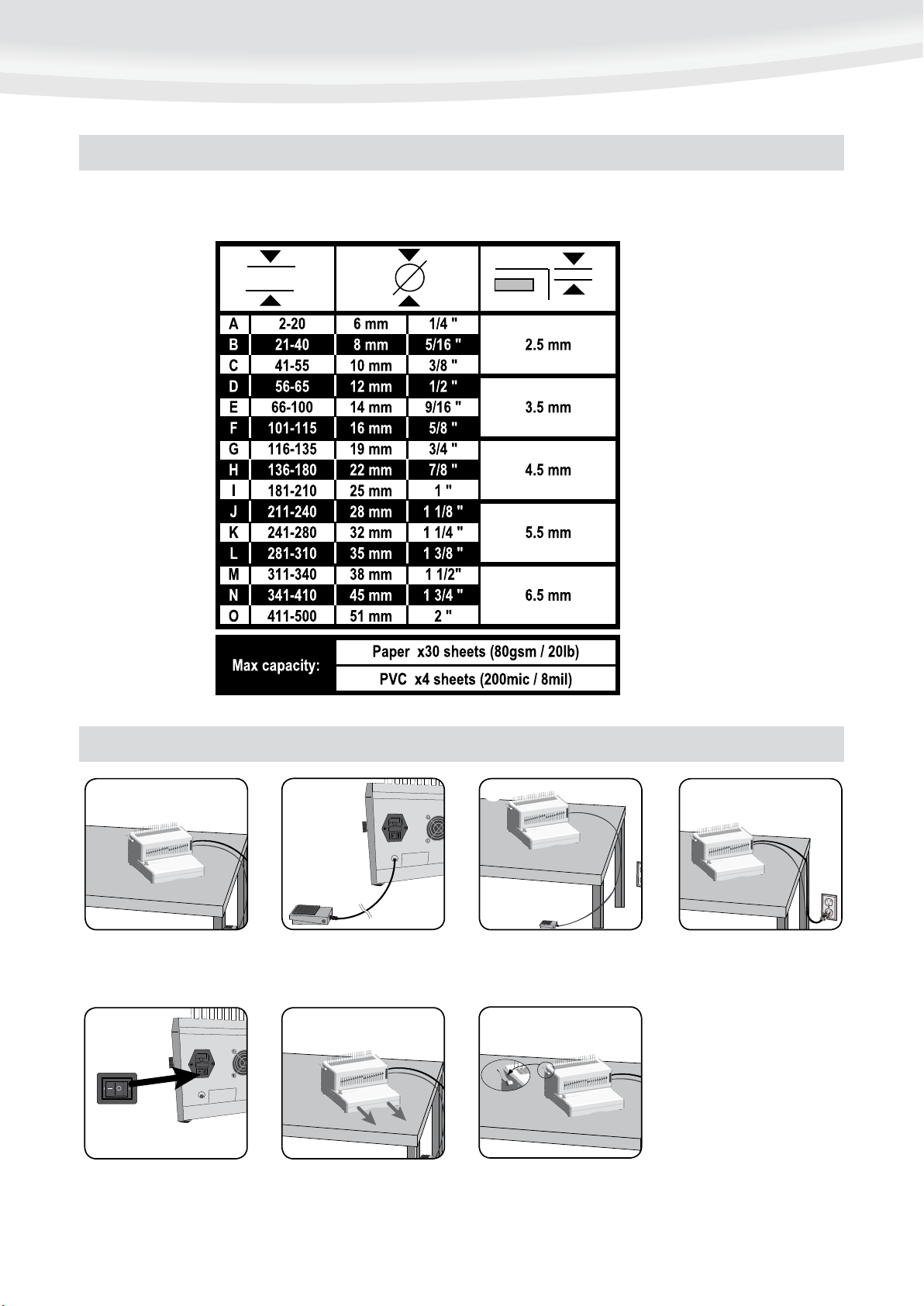 To select the correct size comb diameter for a document use the document measure card as printed on the machine.