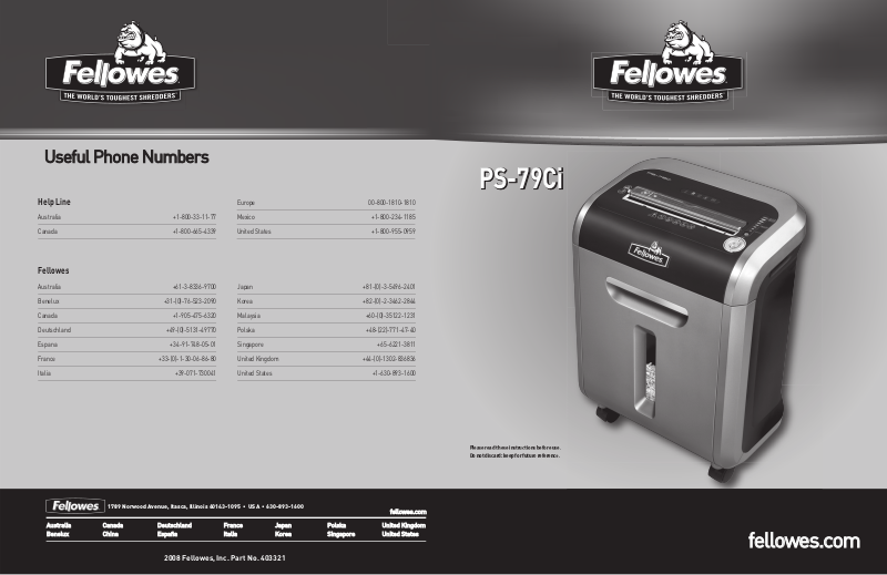 2008 Fellowes, Inc. Part No. 403321
