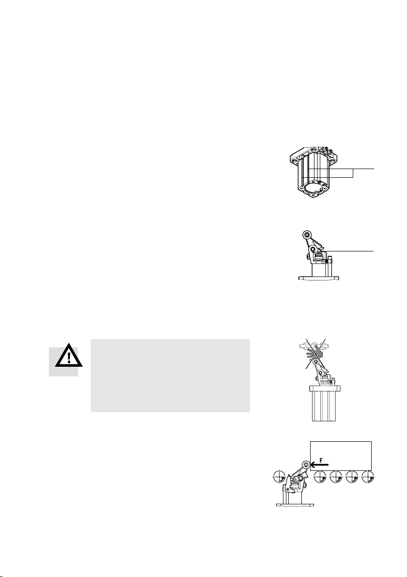 För att öppna vipparmsspärren vid DFST−...−L (è Tillbehör):