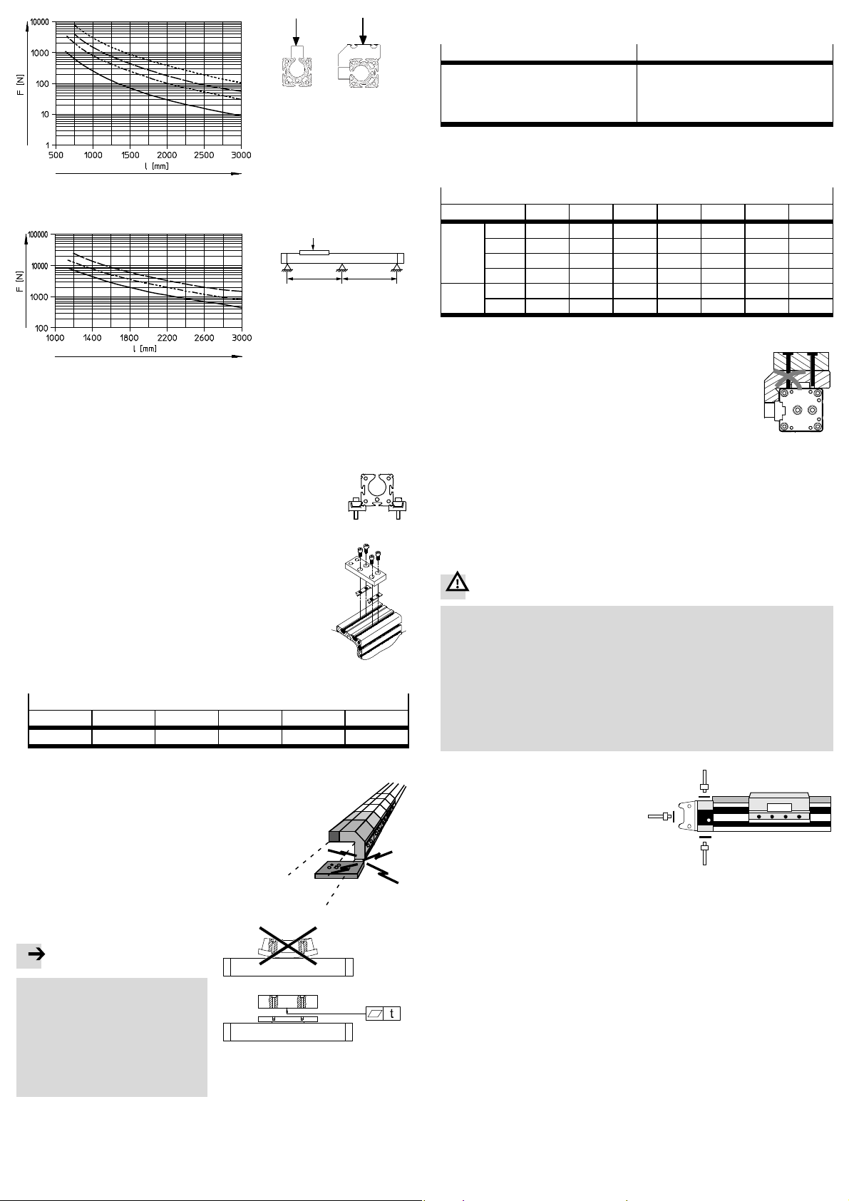 • Verwenden Sie die Mittenstütze (Profilbefestigung) MUP mit folgenden Stützabständen (l) ( Fig. 2).