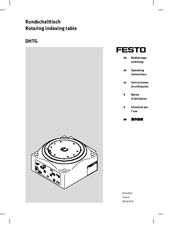 Der Rundschalttisch DHTG ist ein doppeltwirkender Schwenkantrieb nach dem Zahnstange-Ritzelprinzip mit zwangsgeführter Verriegelung (ab Baugröße DHTG-140 zusätzlich mit Überlastschutz).