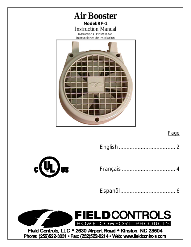 par la garantie ou autrement, écrire à : The Field Controls Co., 2630 Airport Road, Kinston, NC