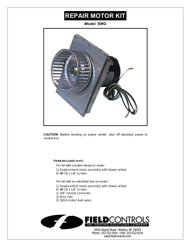 to the control kit in the appropriate location. Secure the conduit to the motor