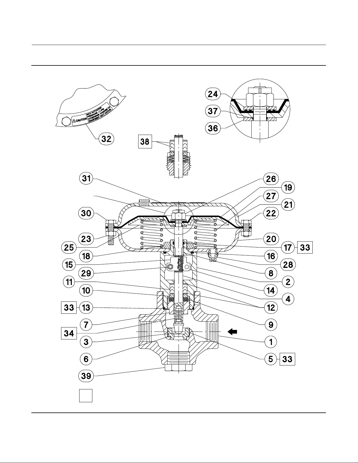 пластину мембраны (поз. 25) на шток клапана. Установите шайбу (поз. 24) и шестигранную гайку мембраны (поз.