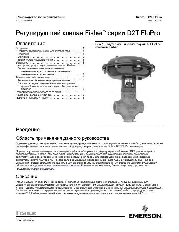 Персонал, устанавливающий, эксплуатирующий или обслуживающий регулирующий клапан D2T, должен пройти