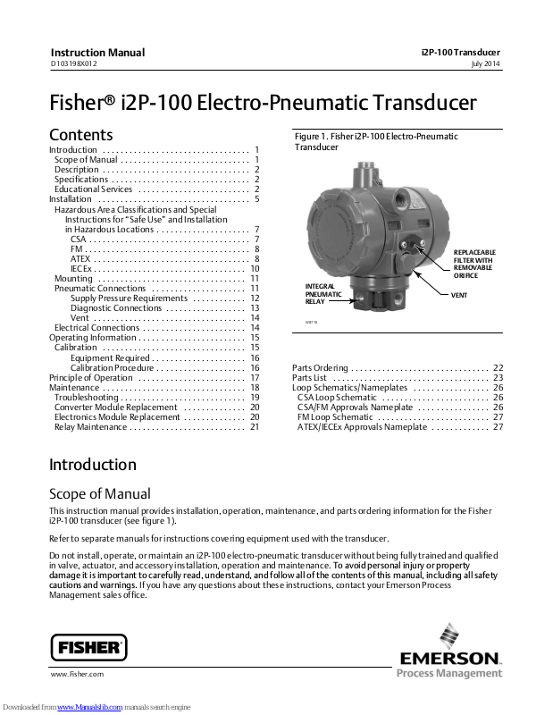 Do not install, operate, or maintain an i2P-100 electro‐pneumatic transducer without being fully trained and qualified