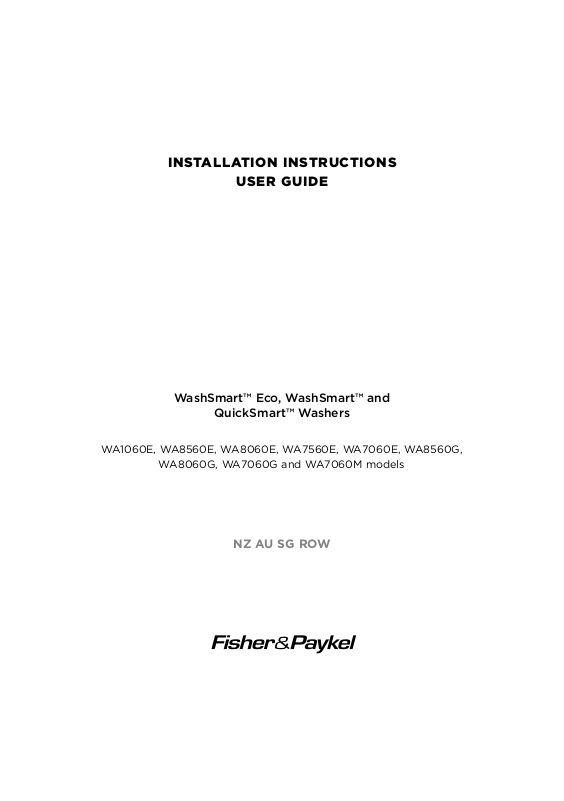 Thank you for buying a Fisher & Paykel washer. We are proud of this washer and trust it