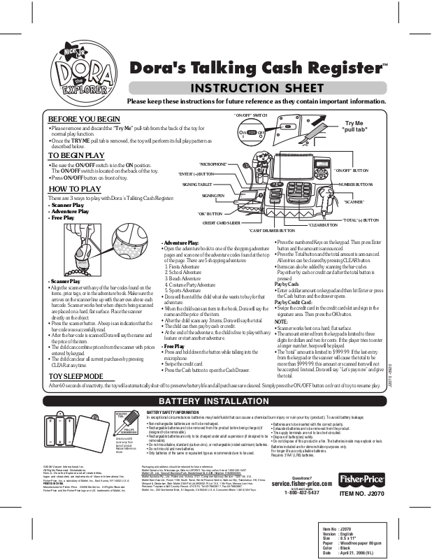 Manufactured for Fisher-Price. ©2006 Mattel, Inc. All Rights Reserved.