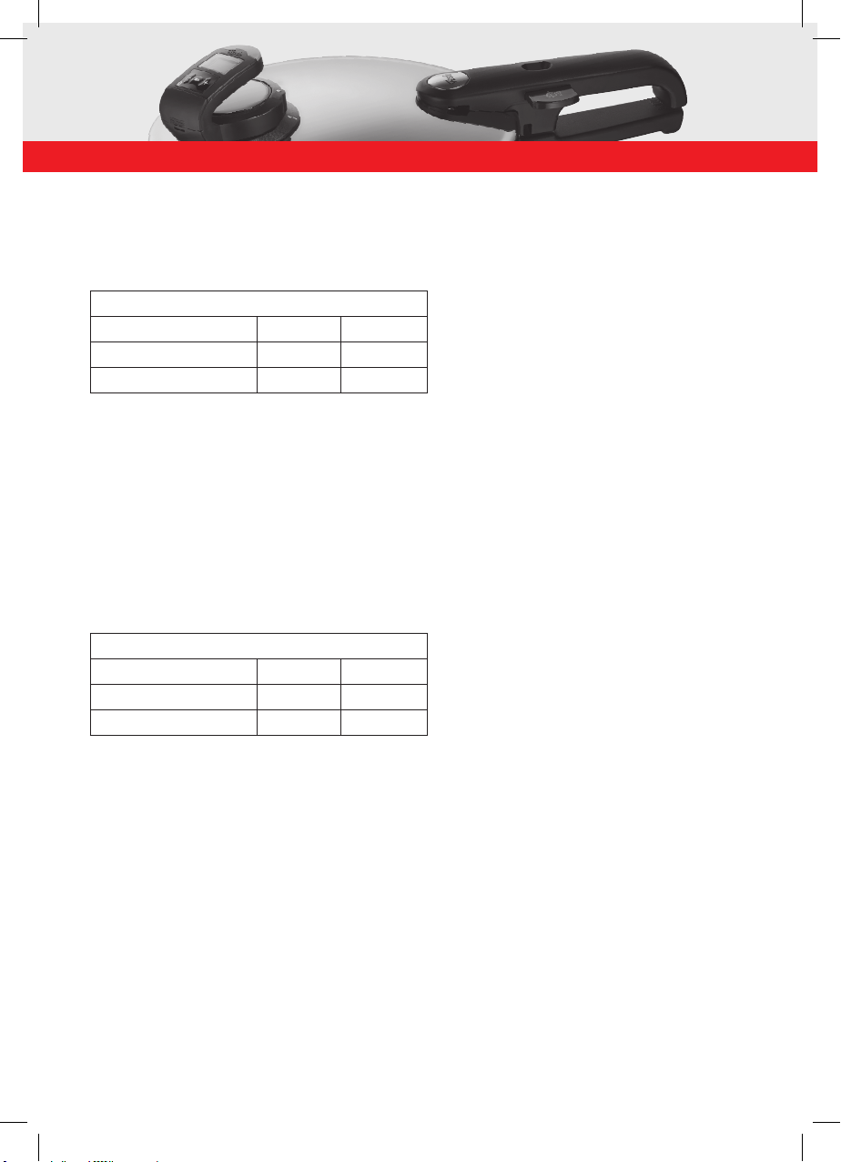 • Doe minimaal 200-300 ml vocht (zie „min“-markering) in de snelkookpan.