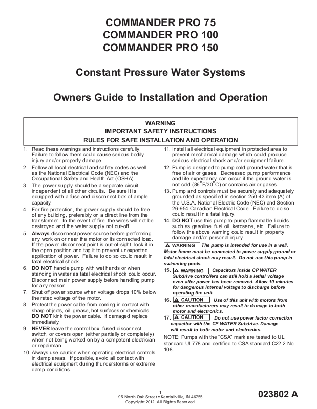NOTE: Pumps with the “CSA” mark are tested to UL