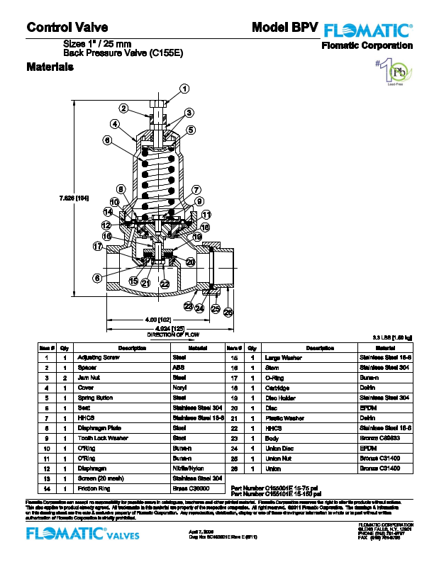 Flomatic BPV Parts List