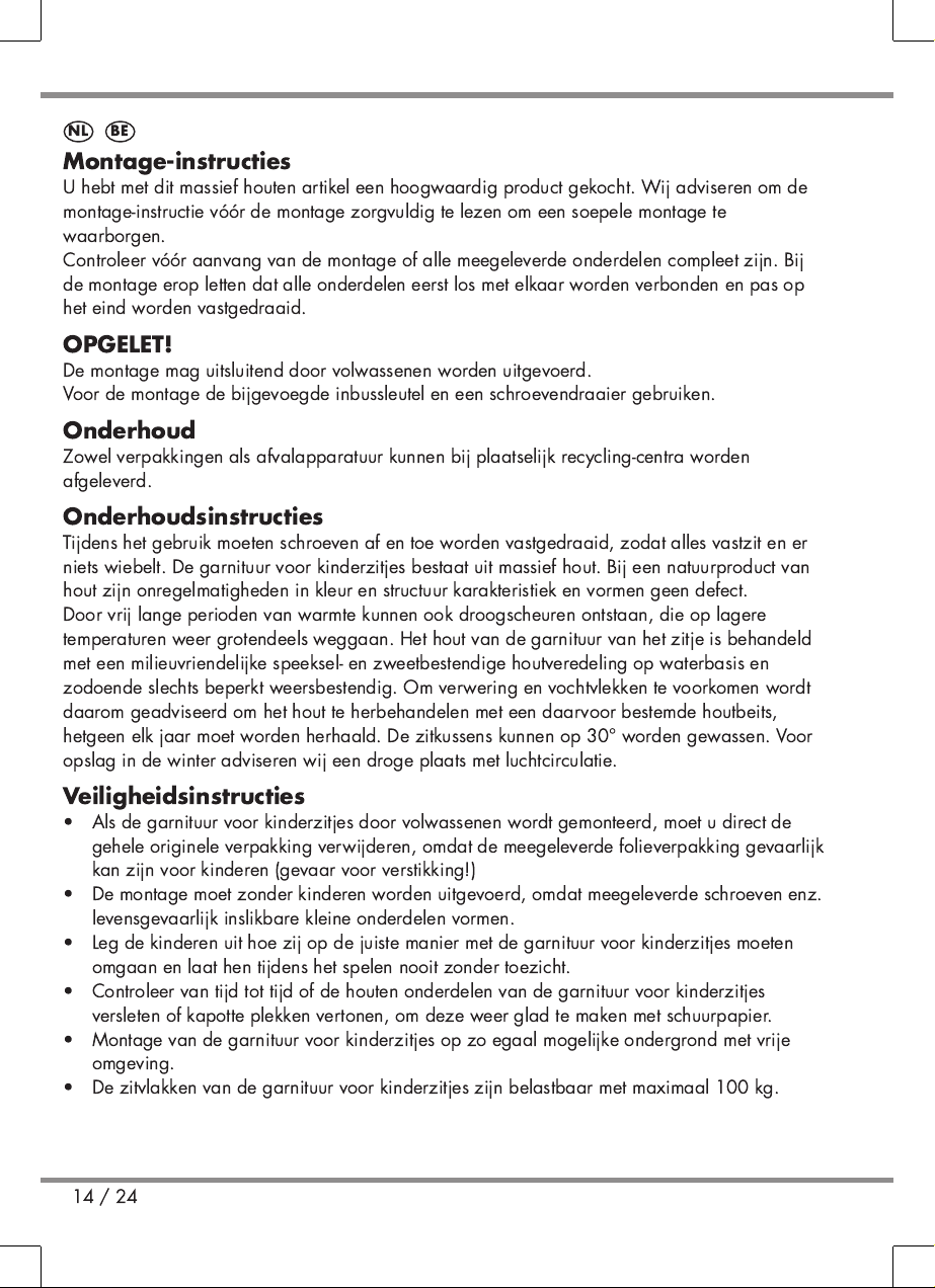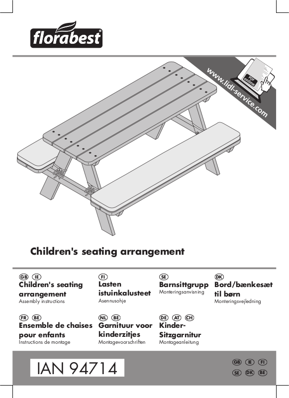 • Hvis bord/bænkesættet til børn samles af voksne personer, skal den originale emballage