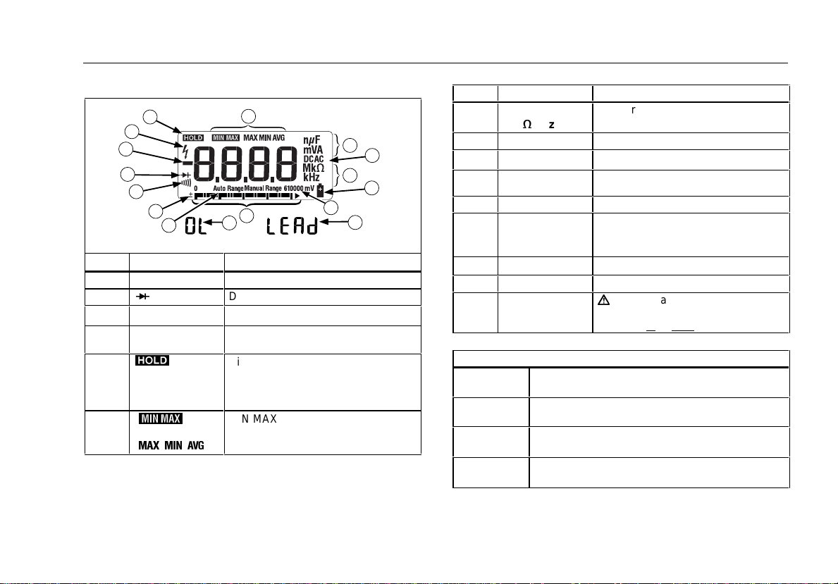 • To avoid false readings that can lead to electric shock and injury, replace the battery as soon as the low batte ry indicator (