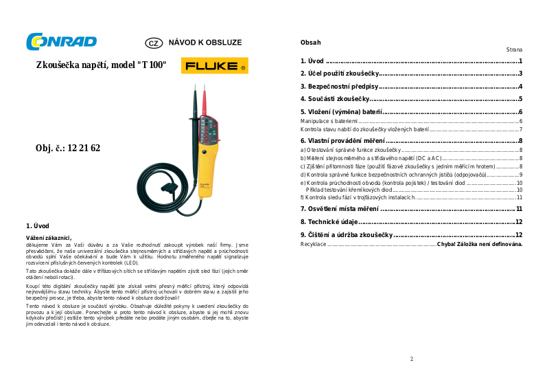 Koupí této digitální zkoušečky napětí jste získali velmi přesný měřící přístroj, který odpovídá