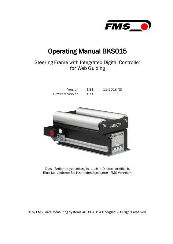 The set-up of the BKS015 web guide including controller unit is limited to only