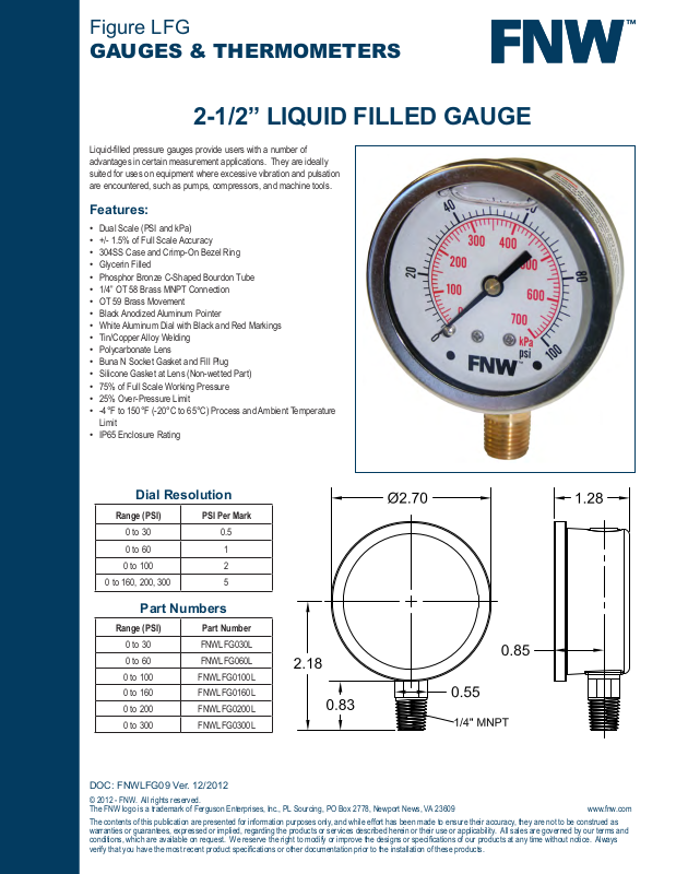 The FNW logo is a trademark of Ferguson Enterprises, Inc., PL Sourcing, PO Box 2778, Newport News, VA 23609 www.fnw.com