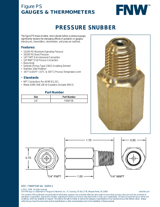 The FNW logo is a trademark of Ferguson Enterprises, Inc., PL Sourcing, PO Box 2778, Newport News, VA 23609 www.fnw.com