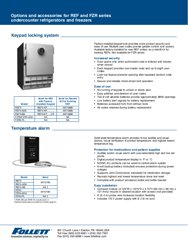 Door brackets allow Follett ® refrigerators and freezers to be used with