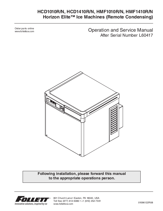 Thank you for purchasing Follett ® equipment. We hope you find that our equipment meets or exceeds your expectations, as our goal is to