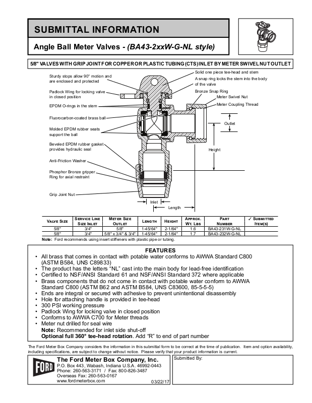 Ford Meter Box BA43-231W-G-NL, BA43-232W-G-NL User Manual