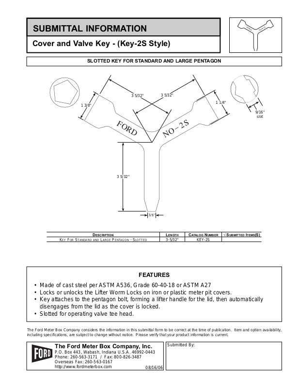 The Ford Meter Box Company considers the information in this submittal form to be correct at the time of publication. Item and option availability,