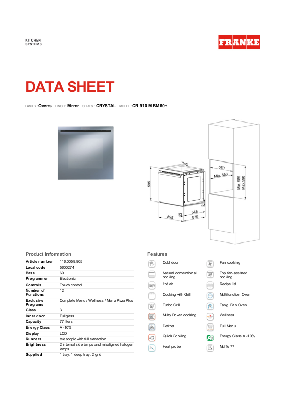 FAMILY : Ovens FINISH : Mirror SERIES : CRYSTAL MODEL : CR 910 M BM 60+