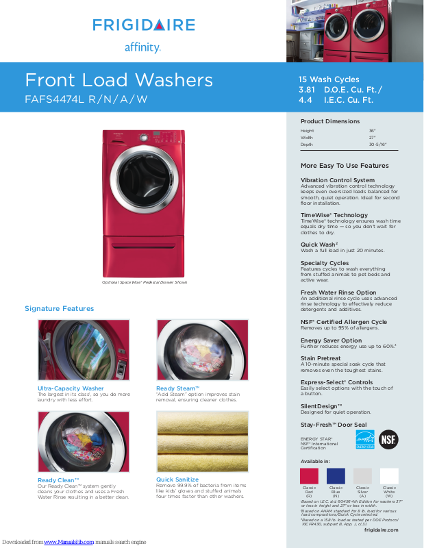 FAFS4474L R / N / A / W 3.81 D.O.E. Cu. Ft. / 4.4 I.E.C. Cu. Ft.