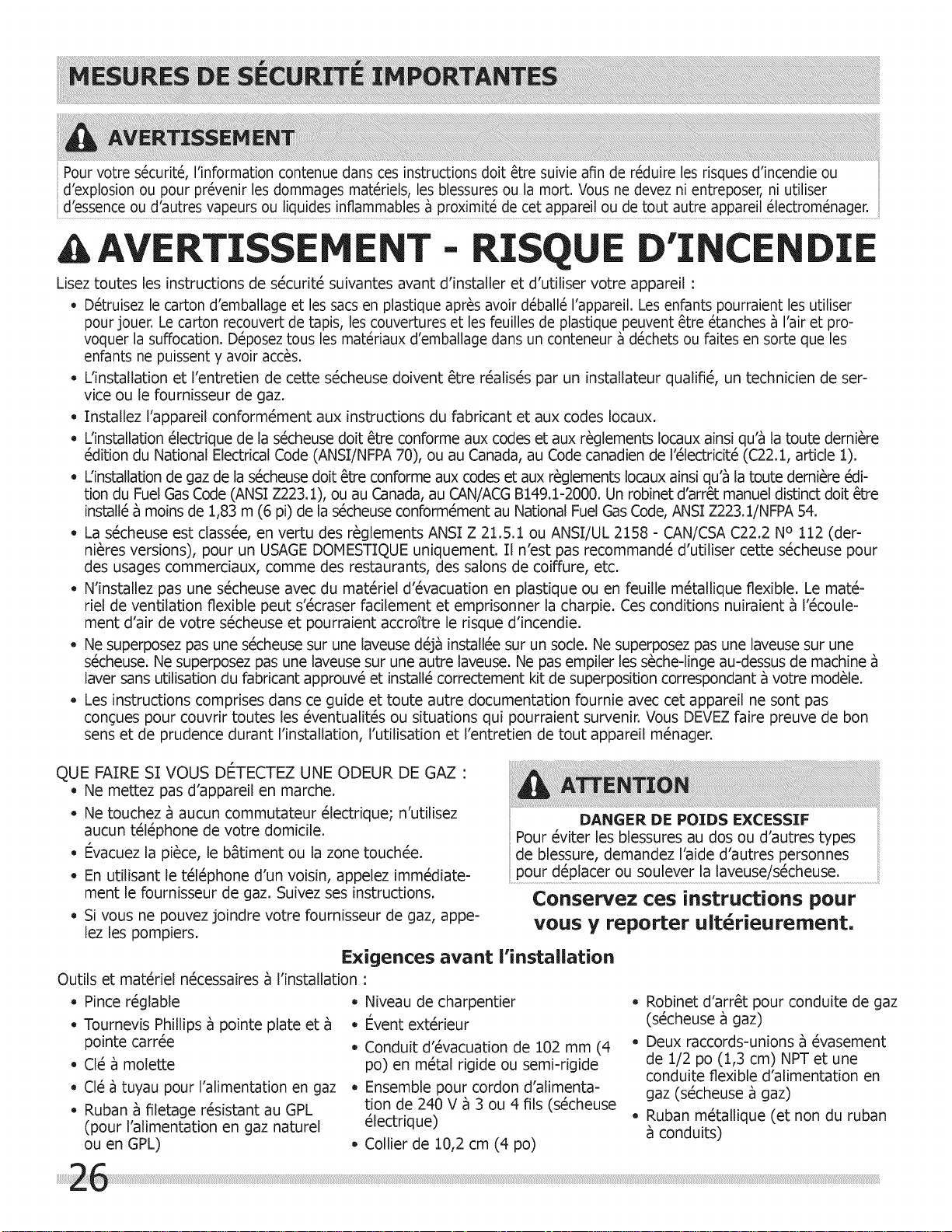 - Clothes dryer installation and service must be performed by a qualified installer, service agency or the gas supplier.