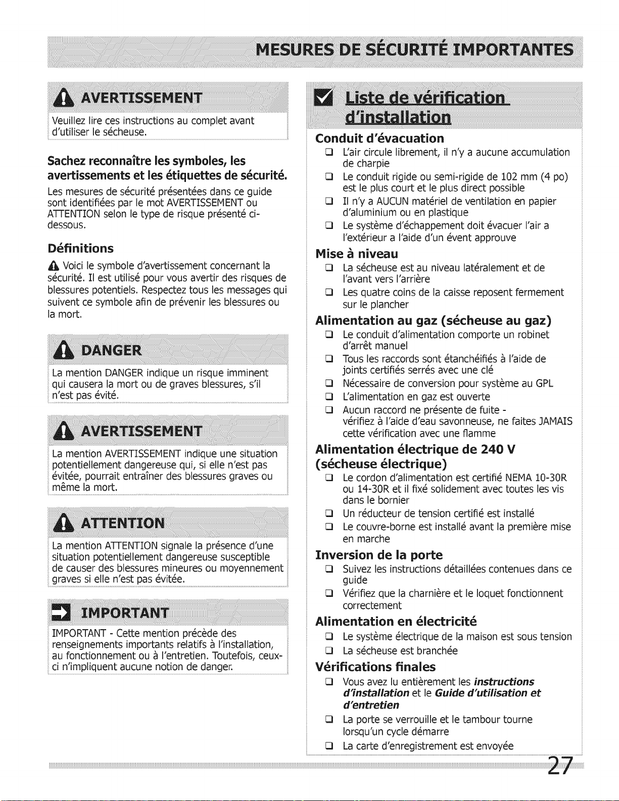 - The dryer is designed under ANSI Z 21.5.1 or ANSI/UL 2158 - CAN/CSA C22.2 No. 112 (latest editions) for HOME