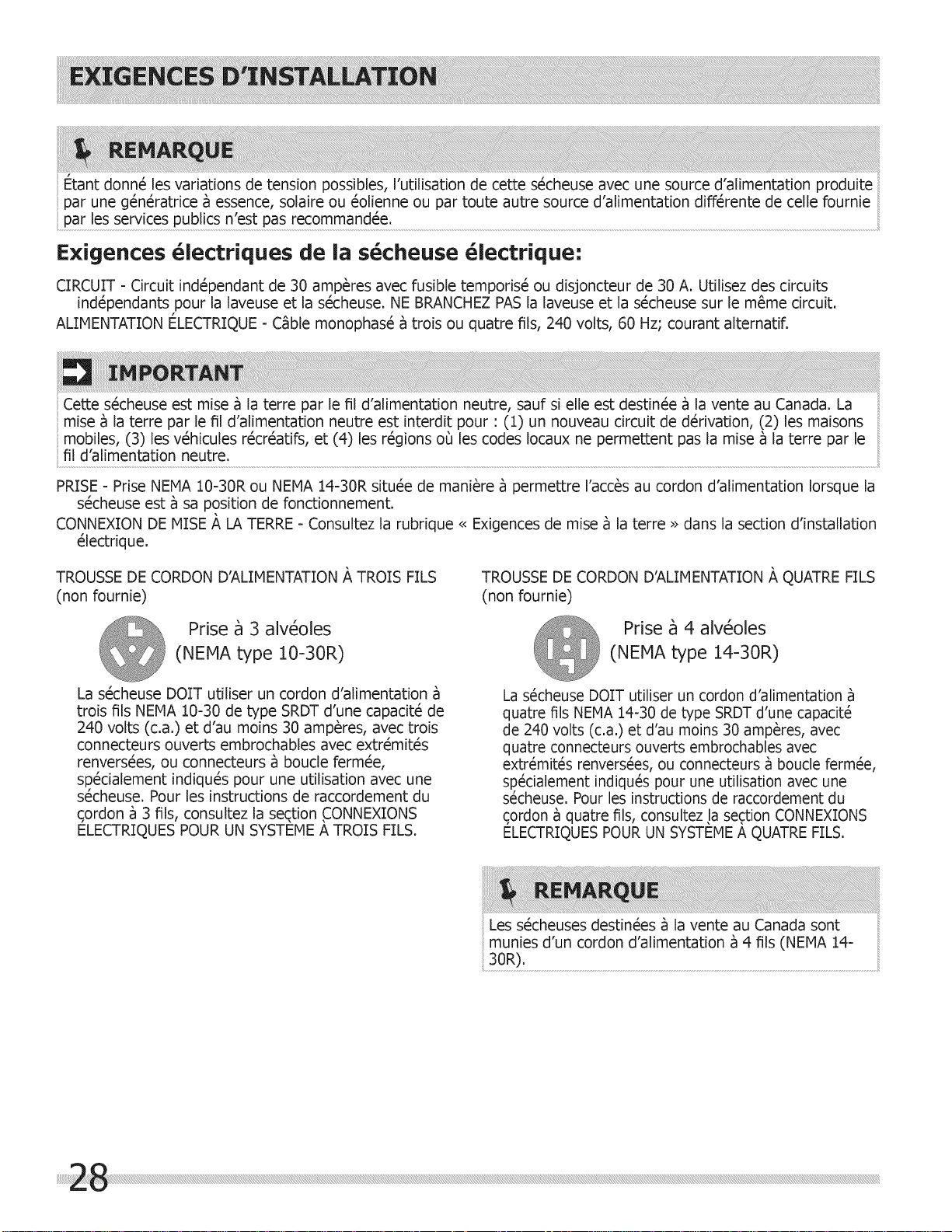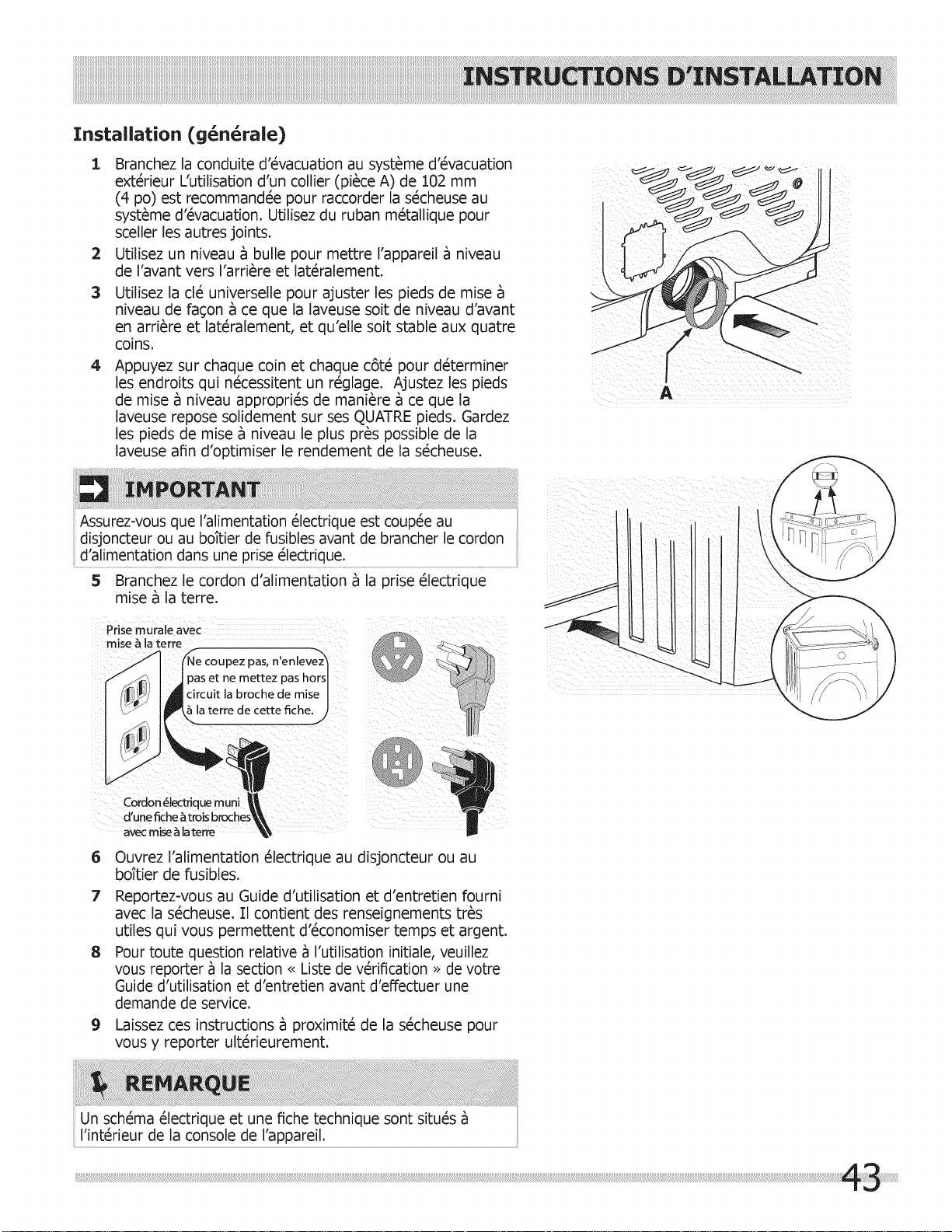utilisation. Le socle ajoute environ 38 cm (15 po) _ votre s6cheuse,