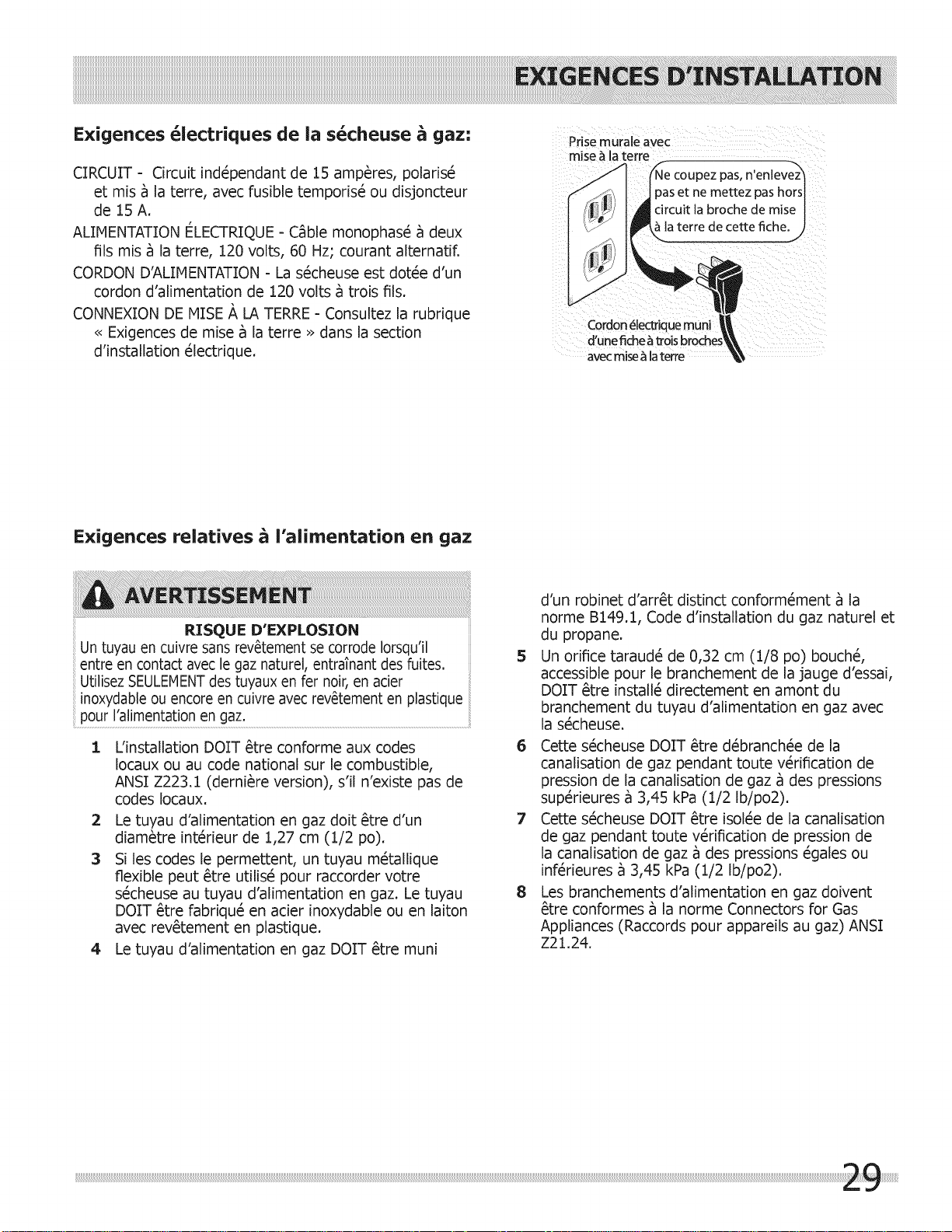 installed within 6 ft (1.83 m) of the dryer in accordance with the National Fuel Gas Code, ANSI Z223.1/NFPA 54.