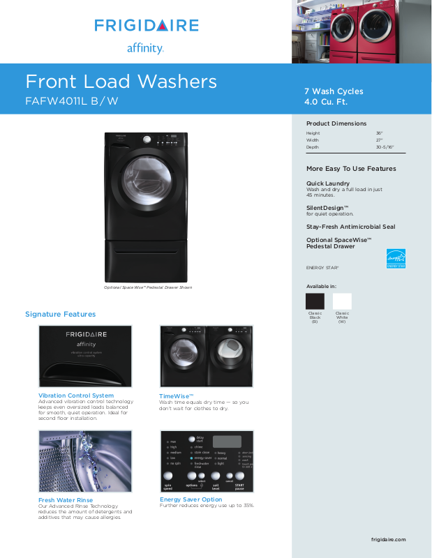 FAFW4011L 07/10 © 2010 Electrolux Home Products, Inc. Printed in the U.S.A.