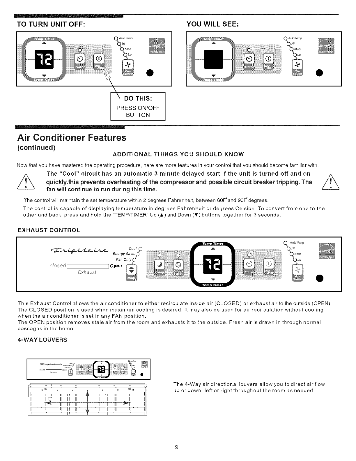The CLOSED position is used when maximum cooling is desired. It may also be used for air recirculation without cooling