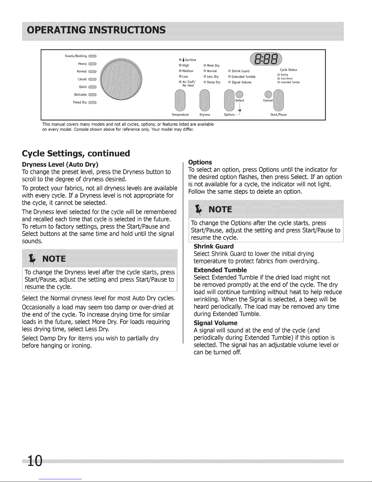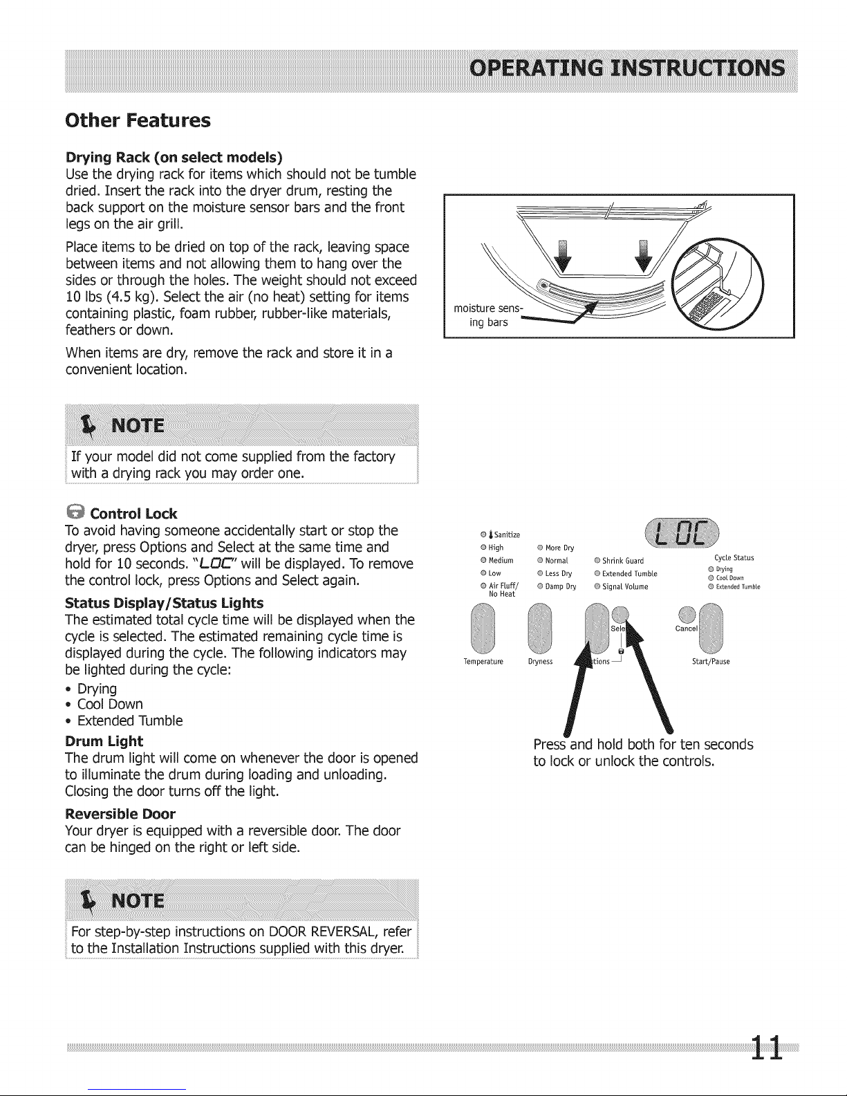 about features for several other models. Your dryer may
