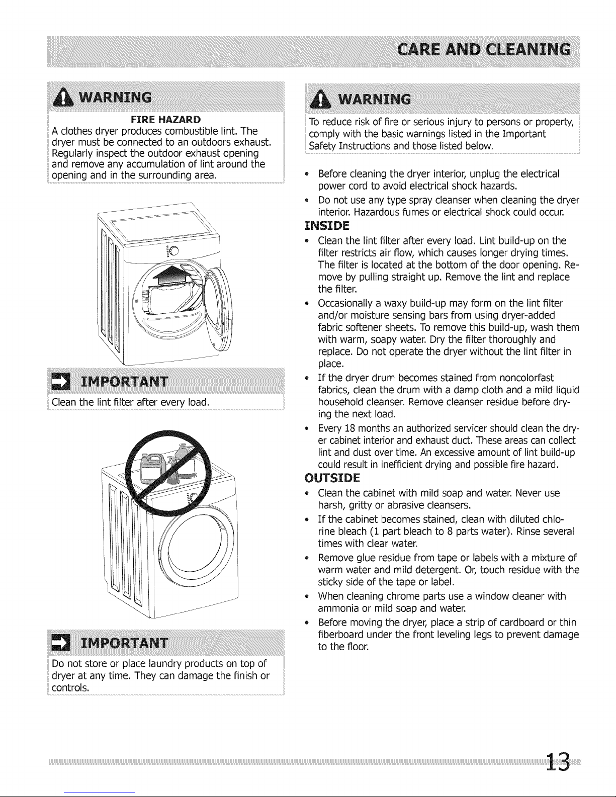 Use the dryer only as instructed in this Use & Care