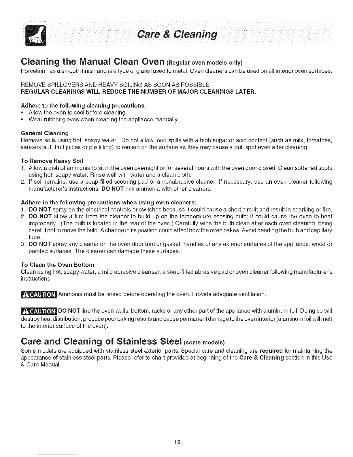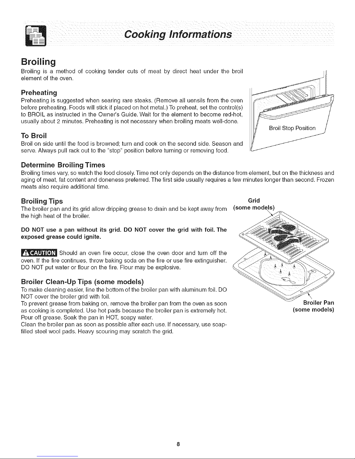 necessary when broiling frequently. Old grease or food spatters cause excessive