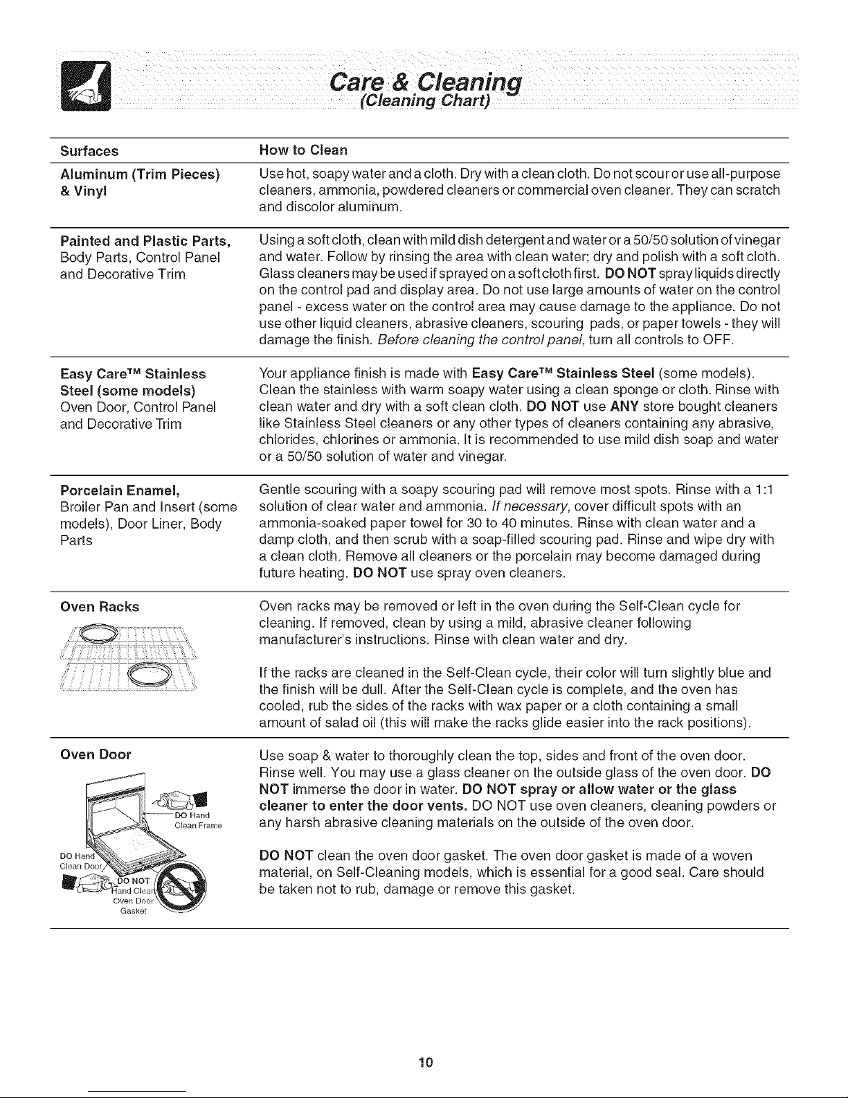 Care & Cleaning ................ 10-13