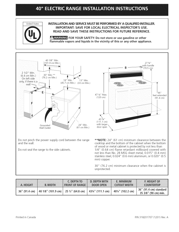 INSTALLATION AND SERVICEMUST BEPERFORMED BY A QUALIFIED INSTALLER.