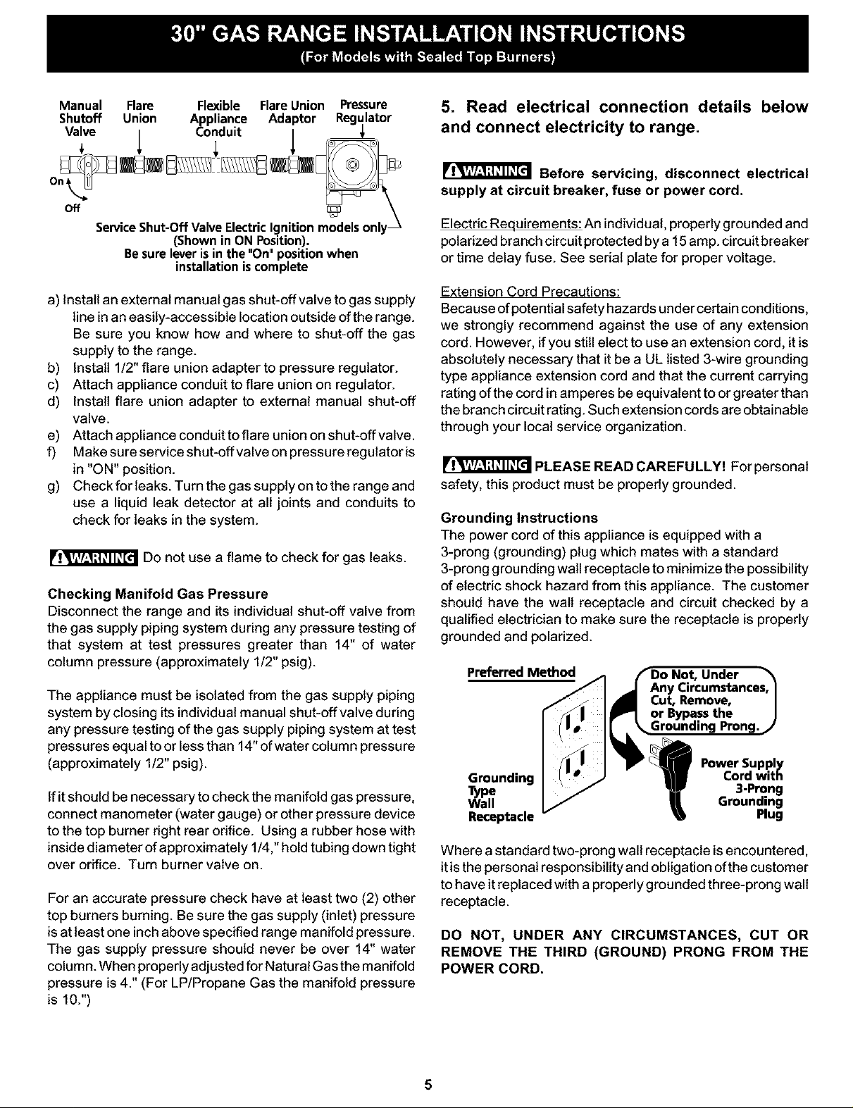 Before Proceeding: Your range is preset to operate on natural gas only. Some
