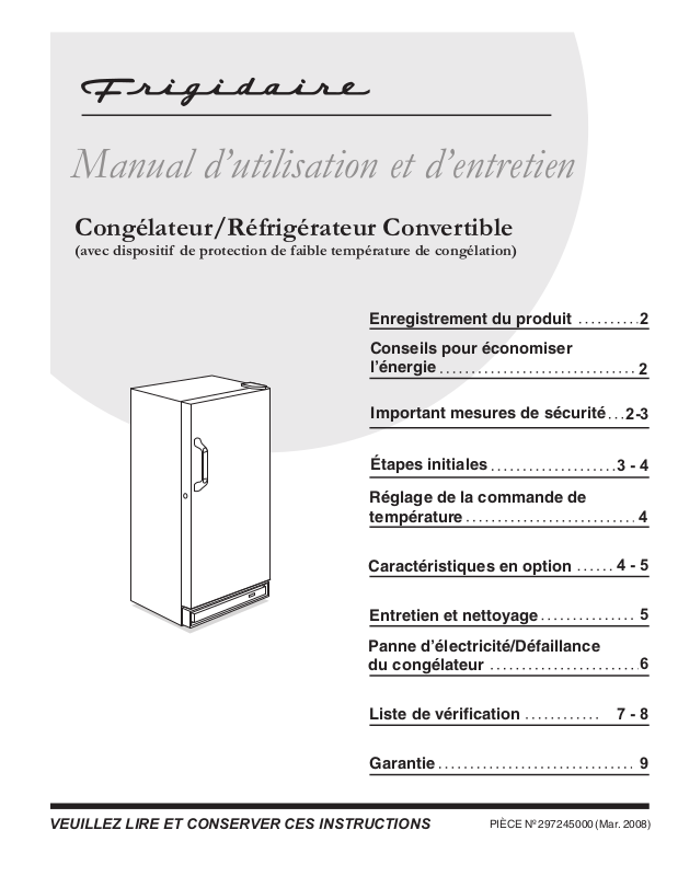 Veuillez lire toutes les instructions avant d'utiliser ce congélateur.