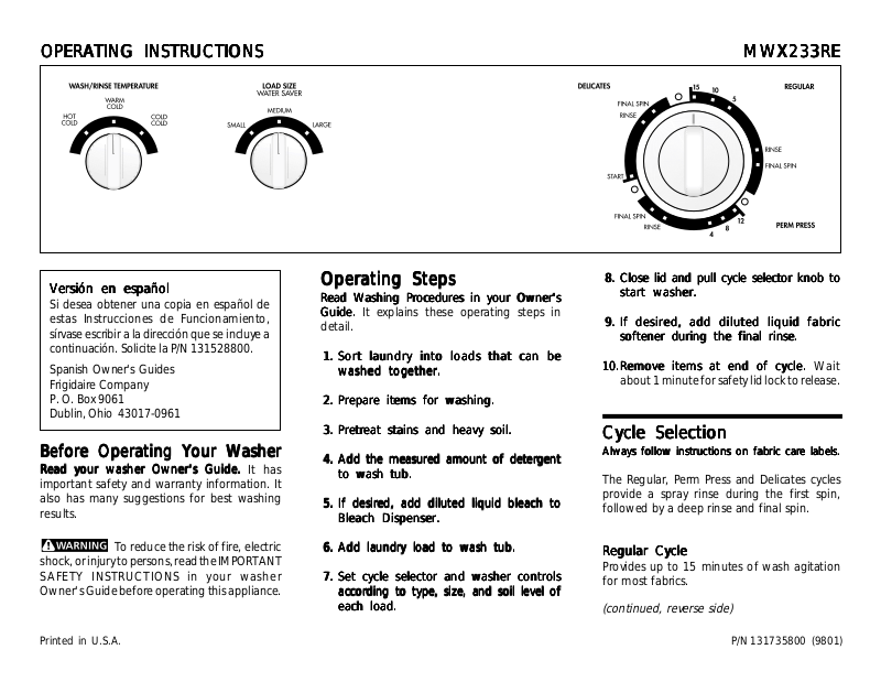 Read your washer Owner's Guide. Read your washer Owner's Guide.