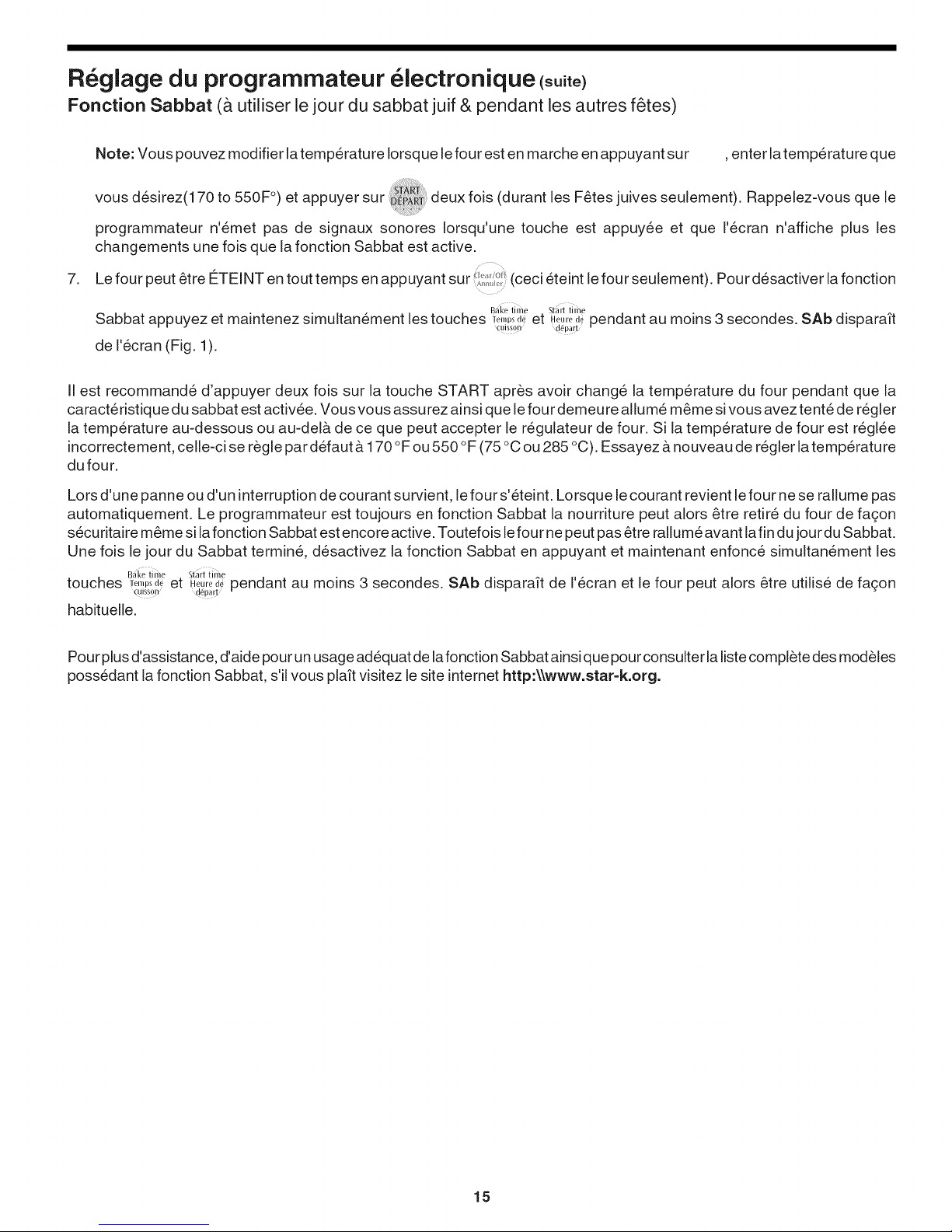 Pour plus d'assistance, d'aide pour un usage adequat de [afonction Sabbat ainsi que pour consulter la liste complete des modeles possedant la fonction Sabbat, s'ilvous plaft visitez le site internet http:\\www.star-k.org.