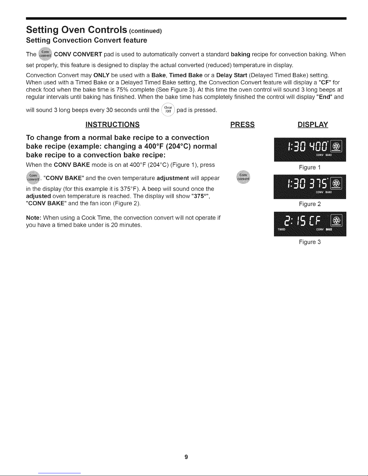 various functions of the oven as described below, Note: The graphics on your timer may not look exactly like those