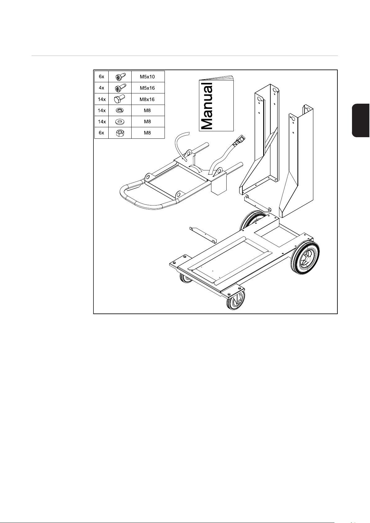 ► Den Fahrwagen auf ebenem, festem Untergrund standsicher aufstellen.