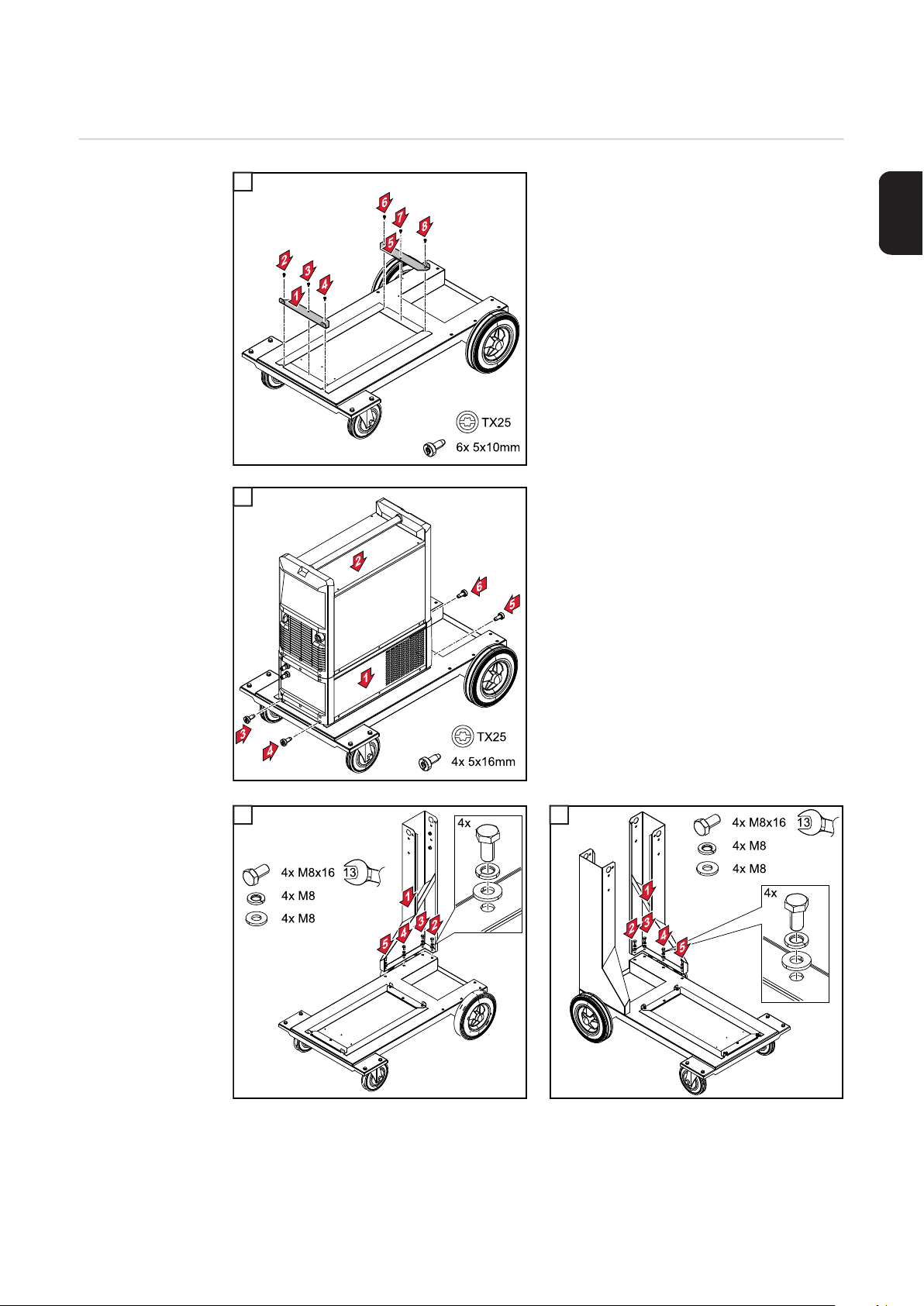 Fahrwagen, die mitgelieferten Schrauben M5x16 verwenden